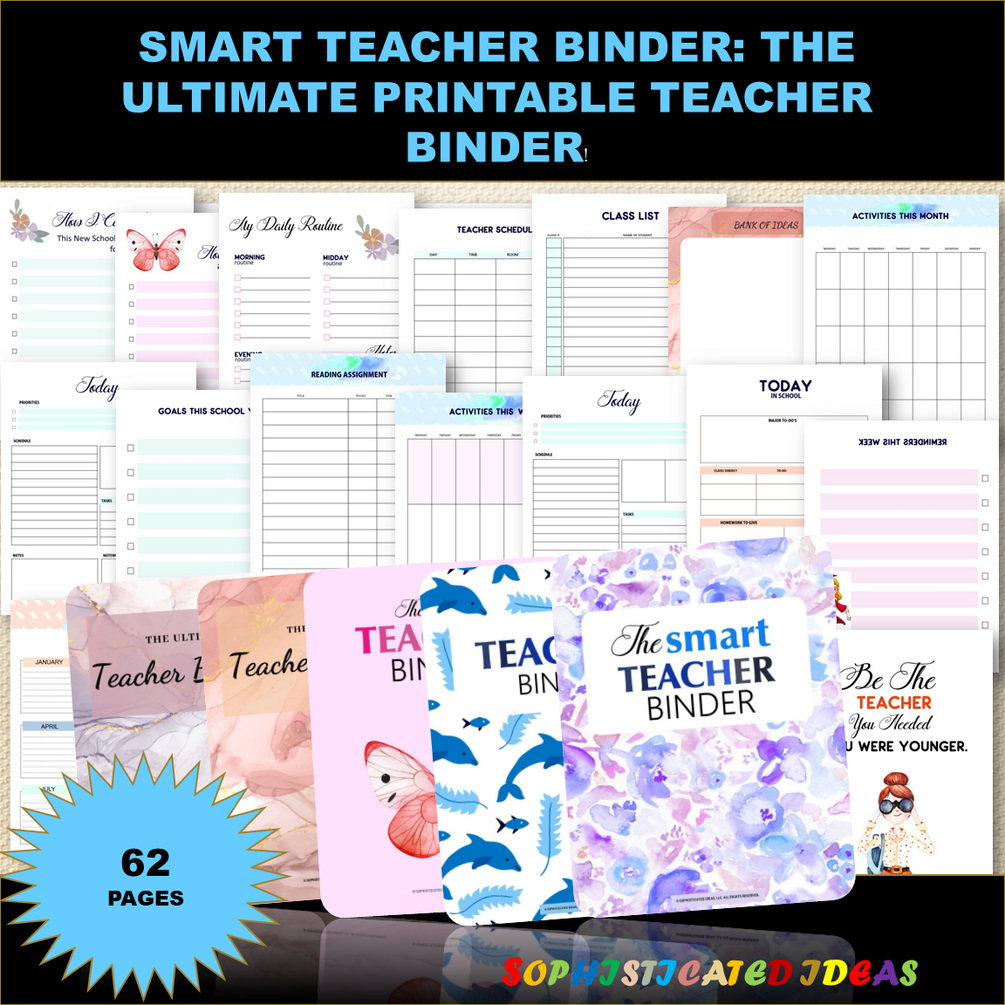 The Smart Teacher Binder has 60+ printable pages. It includes the following must-have organizing tools for school: